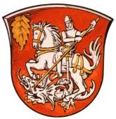 Dieses Wappen erhielt die Gemeinde am 10.06.1787 durch den Schultheiß Christoph Steigerwald. Der hl. Georg ist der Ortspatron und hat nichts mit dem Kirchenpatron zu tun.